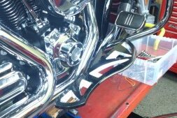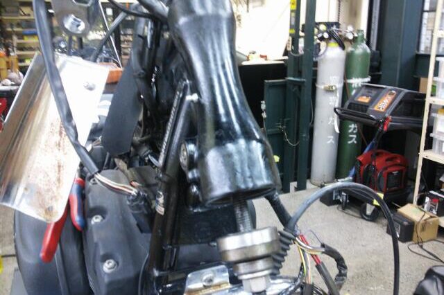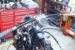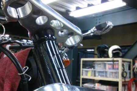 ハンドルポストの交換を承りました(^_^) メーターブラケットでハンドルを固定してるので・・ ブラケットの移設も作業していきます(*゚ー゚)> ポストはこんな感じです。 エンジンの左側に移設しました~