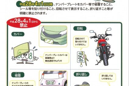 平成28年4月1日(金)よりナンバープレートの 表示義務に関する基準が明確化されます! これまで「番号を見やすいように表示しなければならない」 とだけ定められていたナンバープレートですが、新基準により 位置や角度が数値で…
