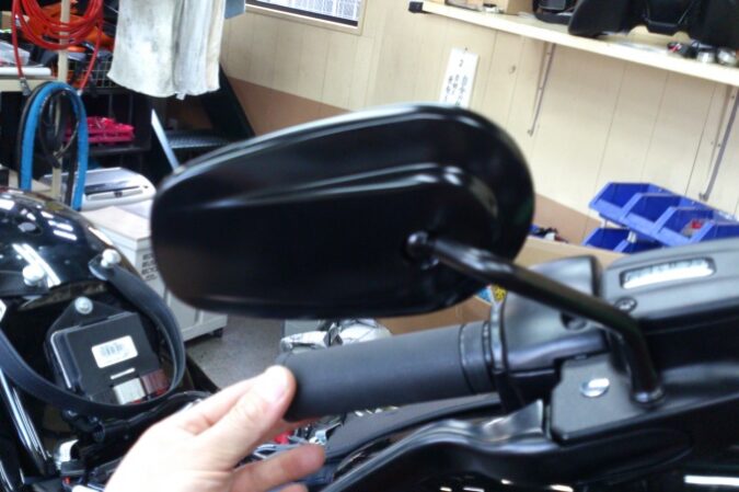 XL883Lにnational cycle inc HAND DEFLECTORを取り付け致しました(^_^ゞ 取り付け前の状態です(^o^)/ ミラーを固定しているナットを緩めステーを共締めしまして(^-^)/ ディフ…