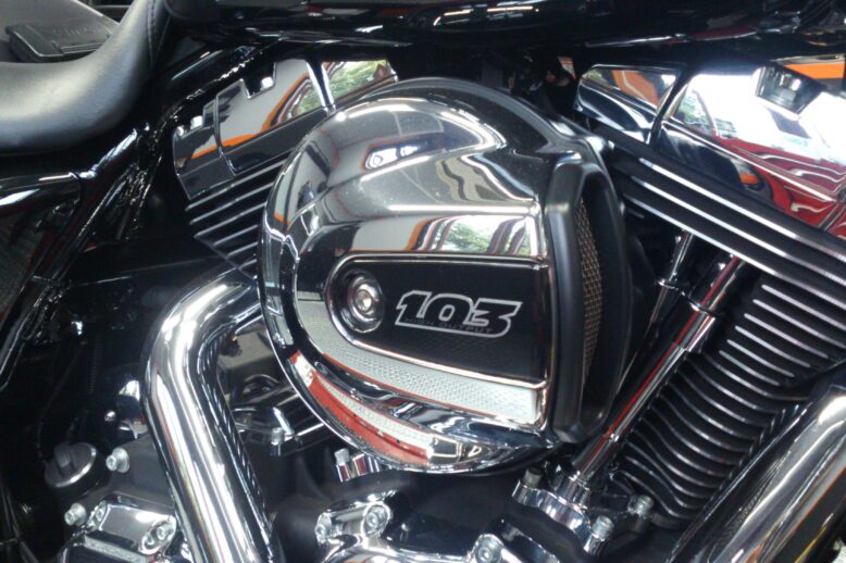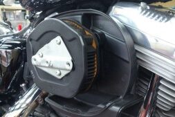 ツーリングモデル ロードキング エアークリーナーカバーを交換致しました。 ノーマルも103の数字が エンジンの大きさをものがたり カッコいいのですが(^-^)/ このカスタムエアークリーナーカバーに変えることで クラシカ…