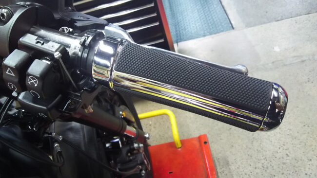 冬の必需品といえばやっぱりグリップヒーター! 今回は18年モデルFXLRに取付たのでご紹介いたします。 ケーブル配線のためタンクを外します。 右のグリップを外すと中に 電子スロットルが入っています。 先端の黒いキャップを…