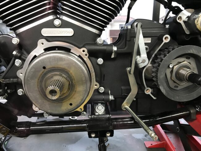 エンジンとトランスミッションの間には ガスケットが一枚‥ 今回カスタムでインナープライマリーを交換中に 少しにじんでいるのを見つけ ガスケットもついでに交換いたしました<m(__)m> トランスミッションは4…