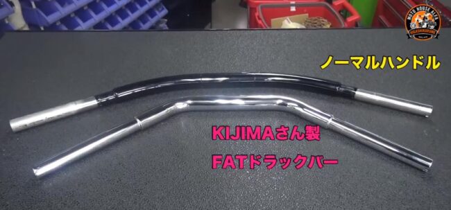 FXSB ハンドル交換の巻き!! 今回は『KIJIMA FATドラックバー』のご紹介です。 太めのハンドルバーに 迫力の曲げ角35°はインパクト抜群です!! ドラッグハンドルバーなので、 外見を壊さずにノーマルのハンドル…