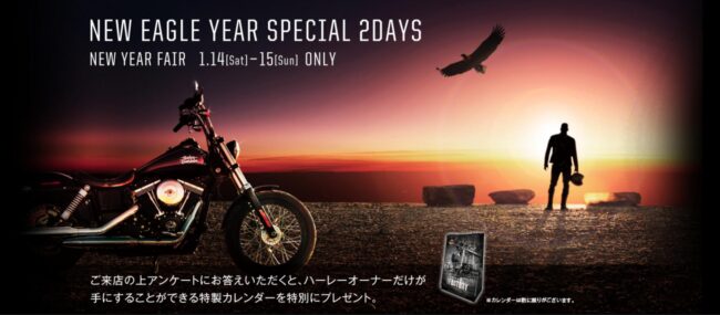 2017.1.14SAT~15SUN 新年の門出を飾るに相応しい 排気量をアップしてさらに魅力が増した ダイナファミリーが続々と店頭に登場! フェア限定の魅力的な特選車などもご用意! 心高ぶる2日間をハーレーダビッド…