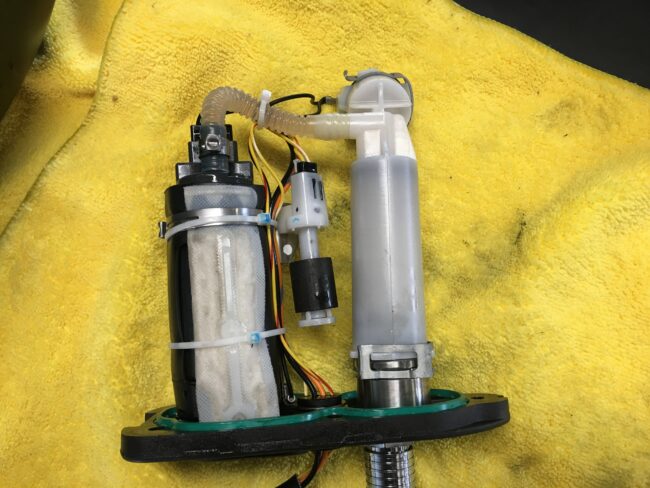 スポーツスターのフューエルポンプ 見たこと有りますか? 実はこんなのがタンクに入ってるんです。 ポンプにフィルター、レベルセンサーが主な部品です。 新しくガソリンのインジケーターを追加した時は このレベルセンサーを高精度…
