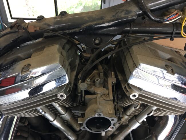 今回は1989年モデルのスプリンガーを メンテナンスさせて頂きました。 この時代の車両はタンクがセパレートなんです。 この様に真ん中で分割されていて 下側がホースで繋がっています。 ガソリンも左右のキャップを開けて 両方…