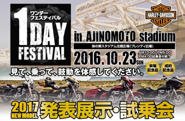 日 時: 2016年10月23日(日)10:00~17:00 場 所: 味の素スタジアム(東京調布)北側広場 詳細は以下のURLより、ご確認ください♪ http://harleydavidson-higashiku…