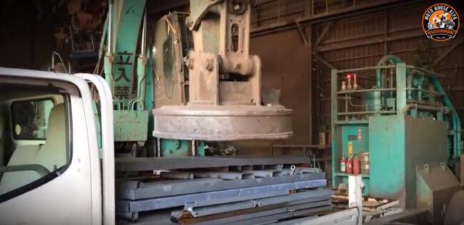 新車が箱に入れられてアメリカからやってきます。 箱出しすると鉄枠、鉄板が出てきます。 それを定期的に廃棄しに行く場面の動画です(^^)/